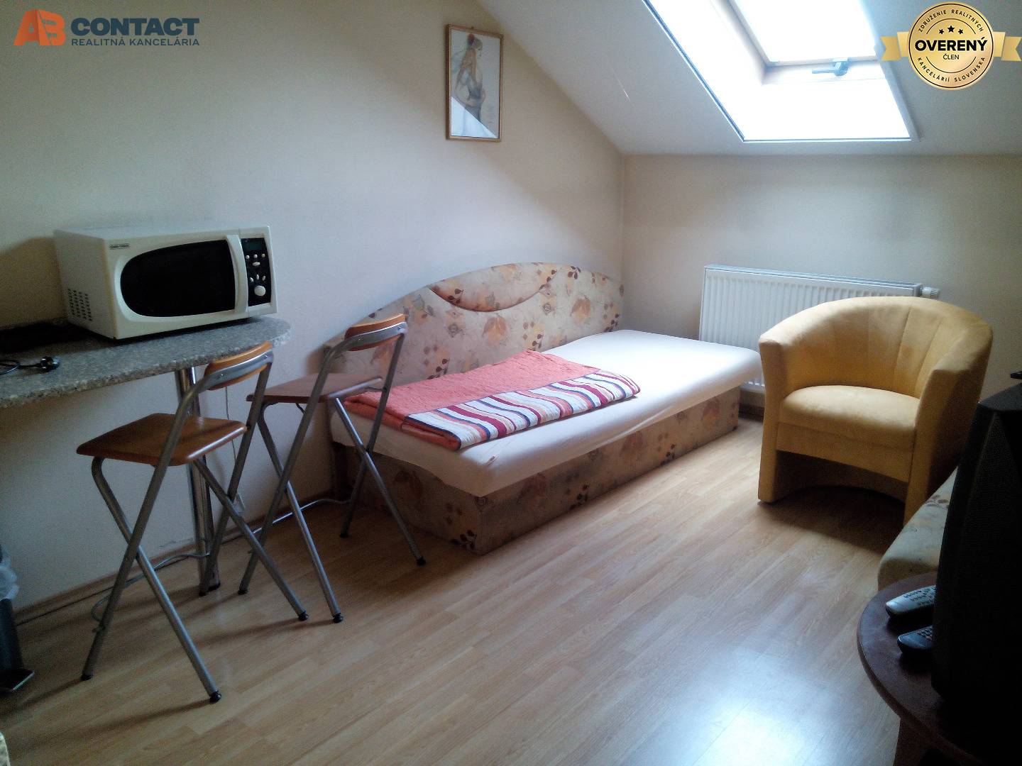 Ponúkame na prenájom apartmán pre jednu osobu, nachádzajúci sa na prvom poschodí apartmánového domu v centre mesta. Pozostáva z izby s kuchynským kútom, chodby a kúpeľne s toaletou. Prenajíma sa kompletne zariadený, internet a káblová televízia sú...